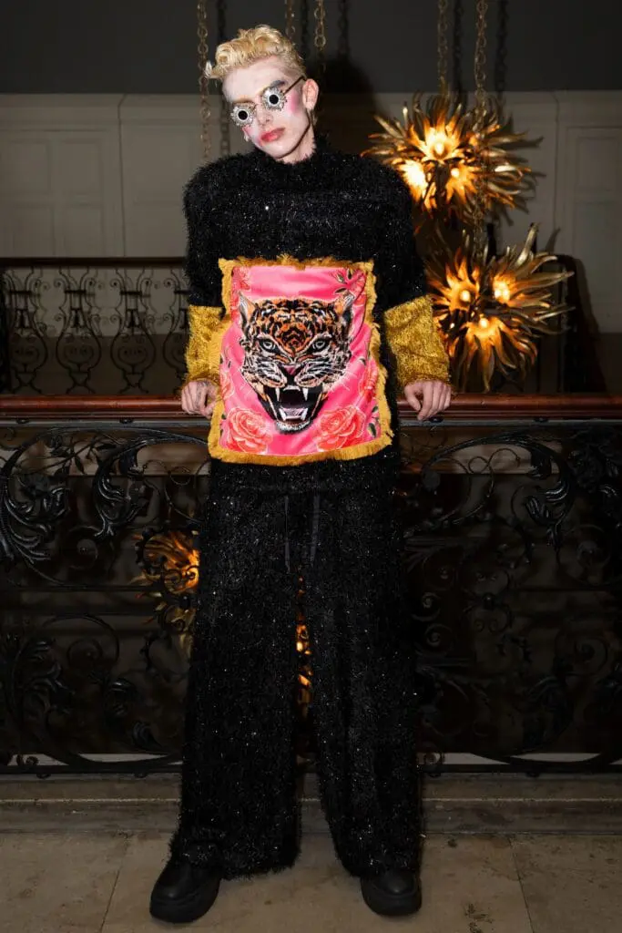 Each look told a story — roaring tigers leapt across garments, graphic prints pulsed with energy, doll-like makeup exaggerated emotion, and oversized neon veils created a surreal sense of theatre. The effect was electrifying: an unapologetic celebration of spectacle and artistry that captured London Fashion Week’s daring, eclectic spirit.