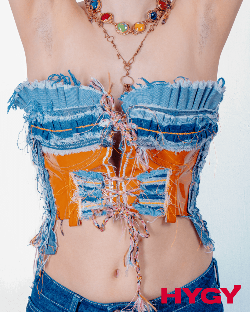 She studied at Den Bosch and later graduated from HKU in Utrecht in 2024, but don’t mistake her for a textbook fashion designer. She calls herself an “upcyclist, maker, artist, editor, tufting nerd, emotional sewer” — and yeah, all of it shows.